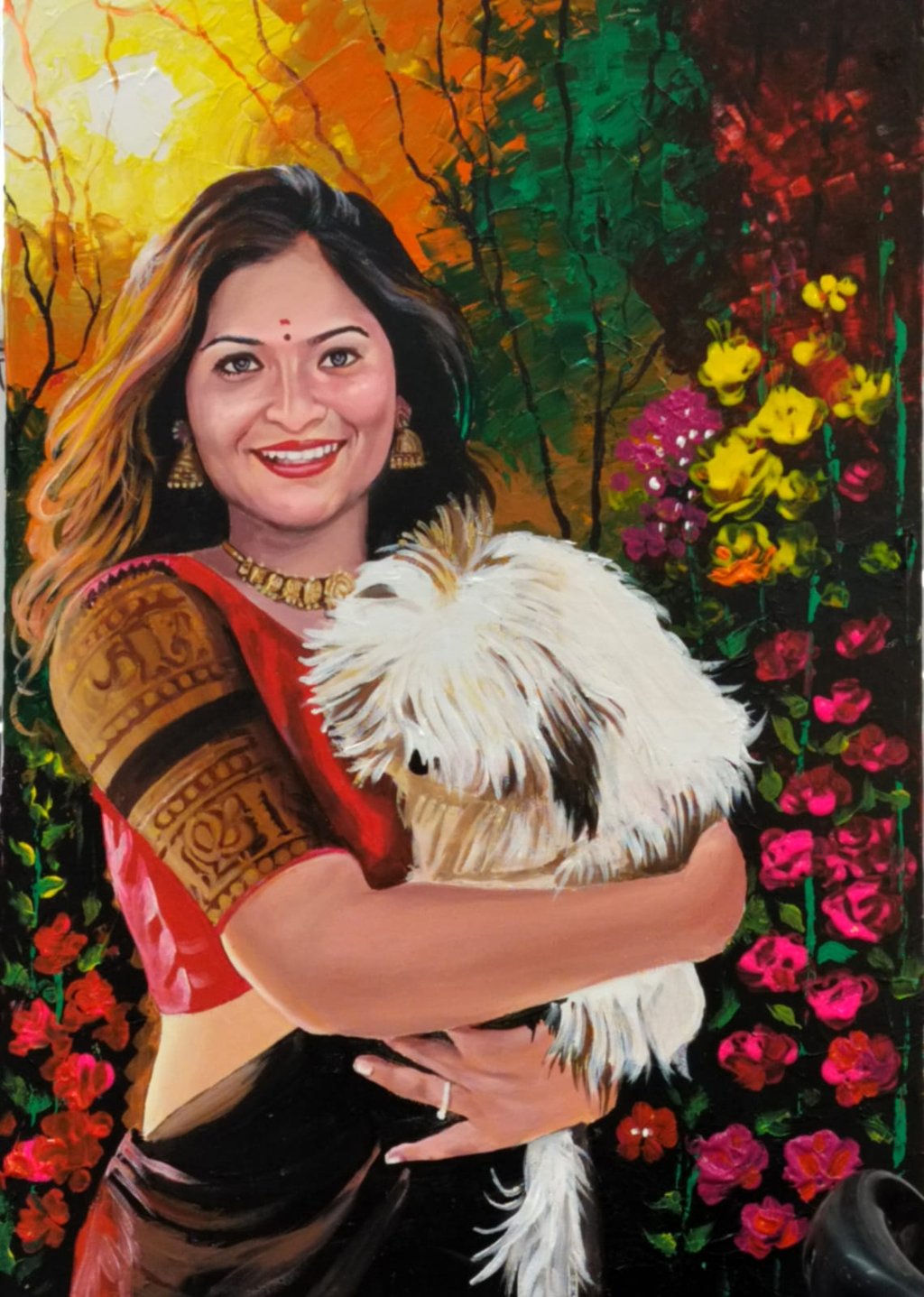 A beautiful live painting of the bride created during the wedding celebration, capturing the special moment as a timeless artwork.