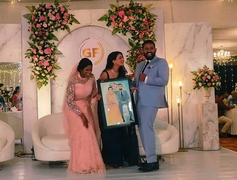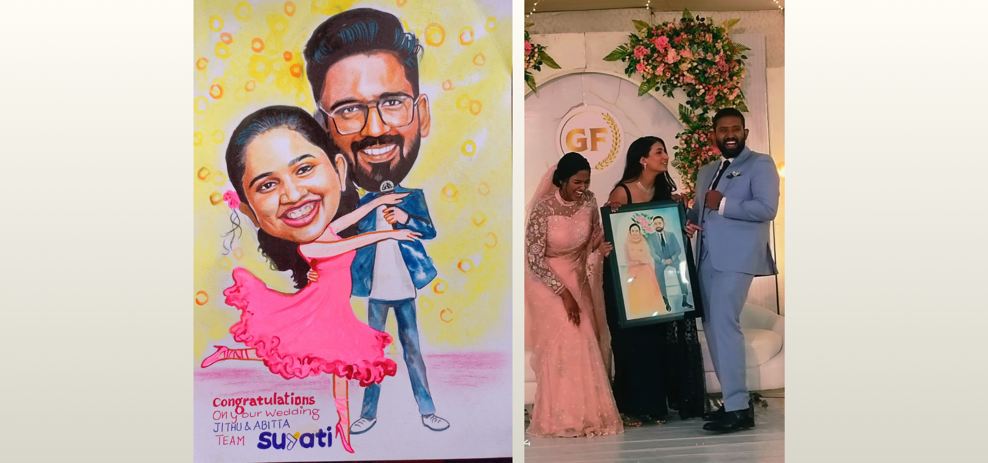Quick and realistic caricature sketches created live for guests within minutes. A perfect entertainment activity for weddings, parties, and corporate events.