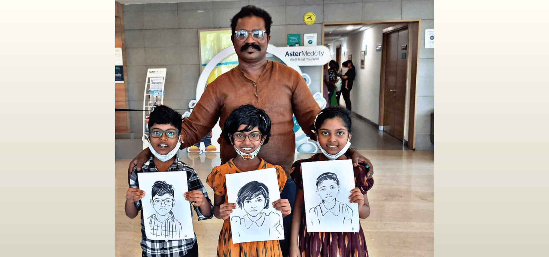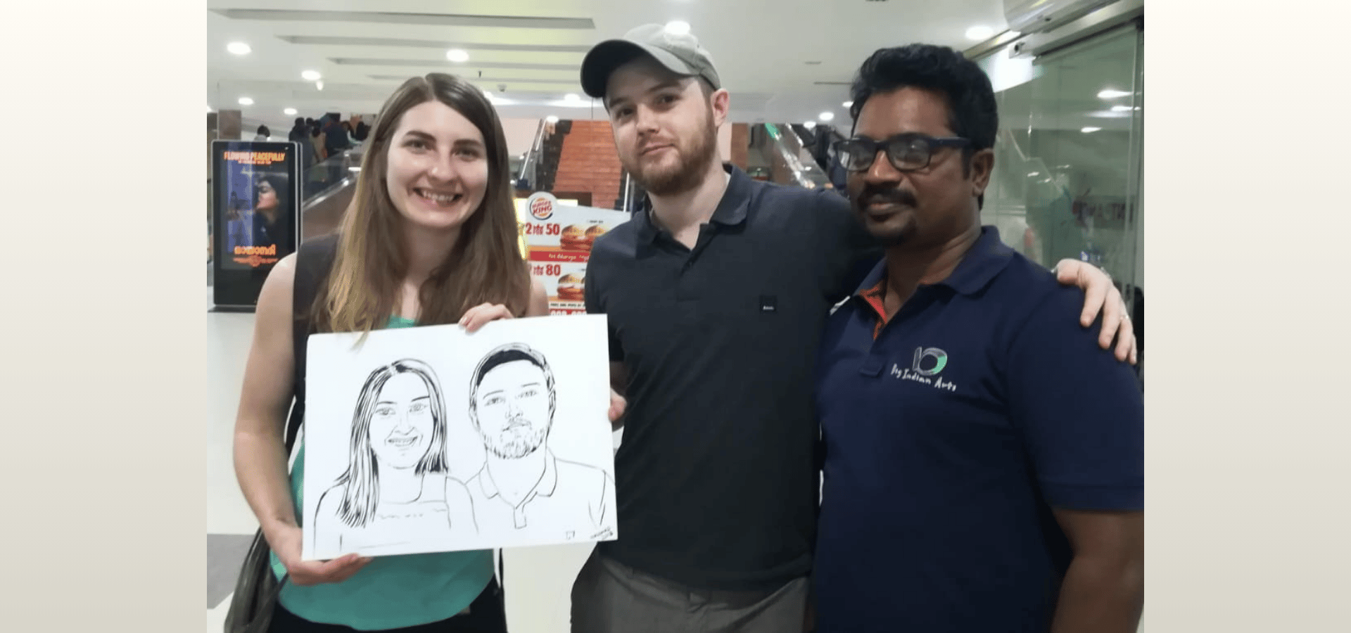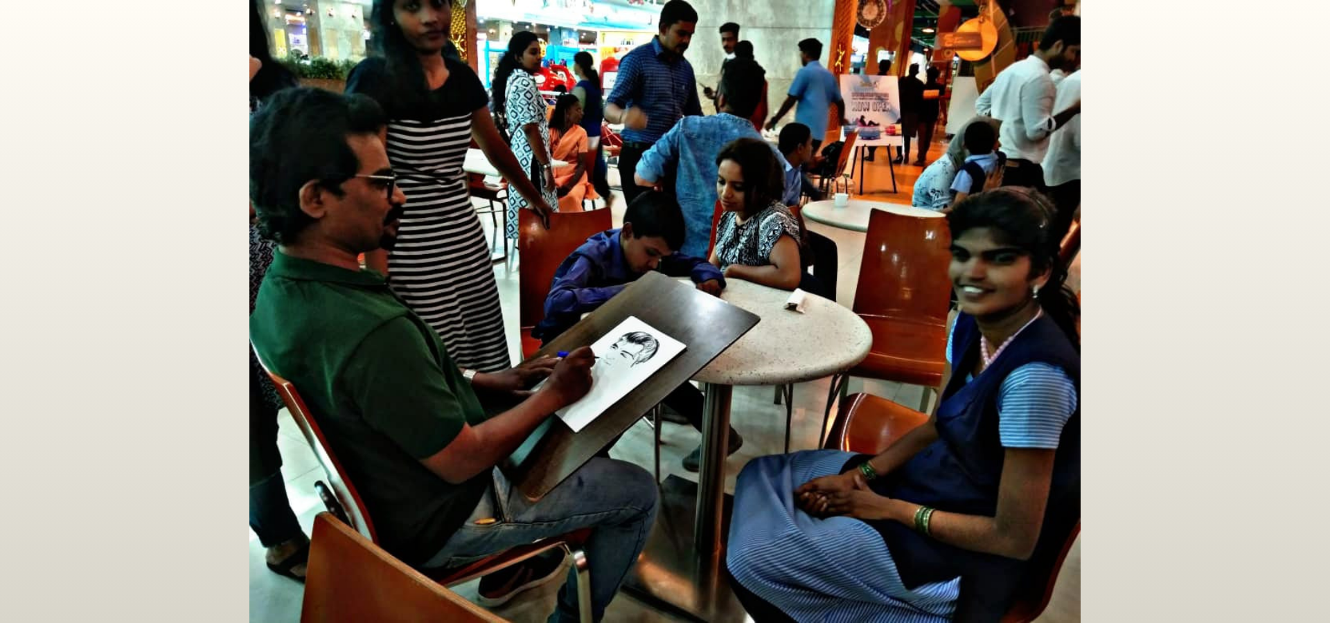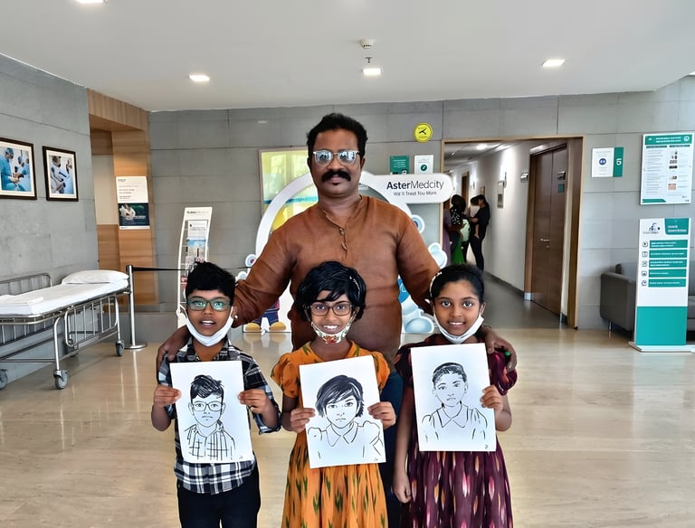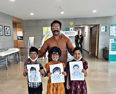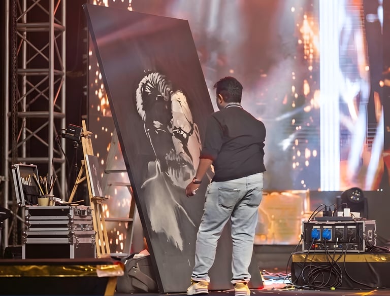 Professional artist specializing in live caricature events, portrait painting, mural art, and stage performance art across Kerala.