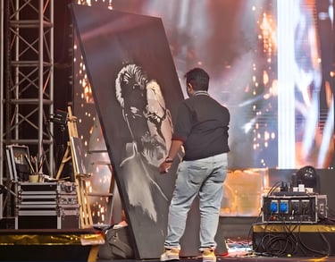 His unique talent allows him to create beautiful artwork within minutes during live events, captivating audiences and turning special moments into timeless art. Whether it is a wedding, corporate event, stage show, or private artwork commission, Noushad brings creativity and passion to every project.