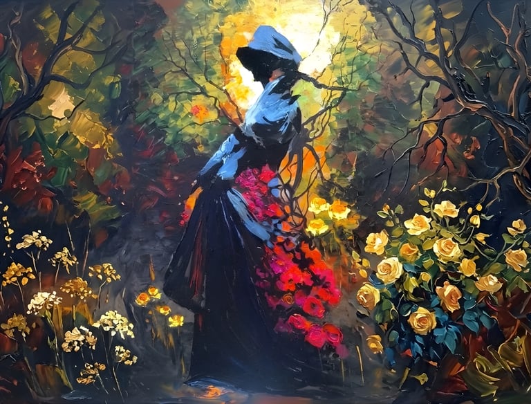 Traditional oil paintings created using rich colors and techniques. These paintings are known for their depth, texture, and beauty.